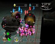 Petrifying enemies that are in the process of eating any Pikmin will make it possible to save those Pikmin from dying. Likewise, bomb-rocks that were in the middle of their countdown will freeze, allowing the leaders and Pikmin a chance of reaching safety. It should also be noted that a petrified dormant bomb-rock will become active after the petrification ends, even if it wasn't attacked during.