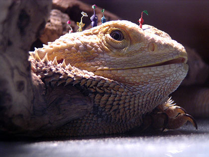 | Summary | Clay artwork of Pikmin standing atop an real-world lizard. |