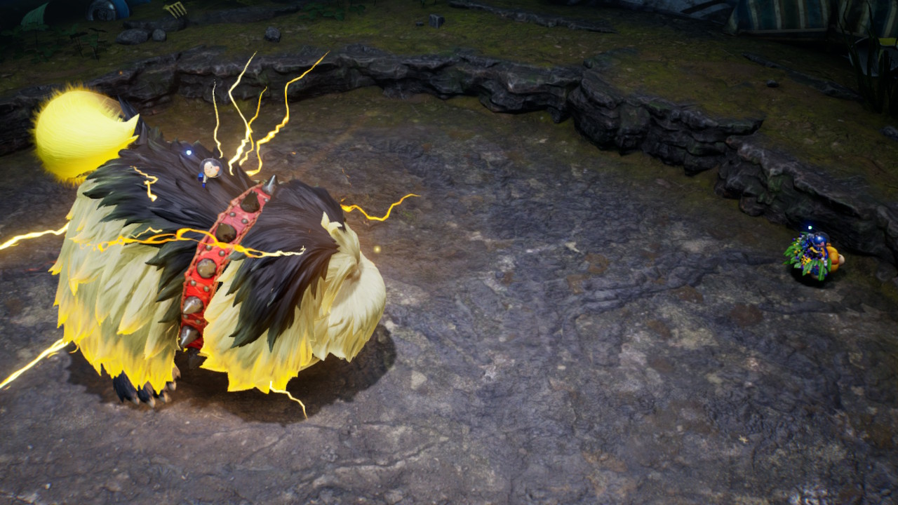 | Summary | The Ancient Sirehound about to charge in its electric phase in Pikmin 4. |