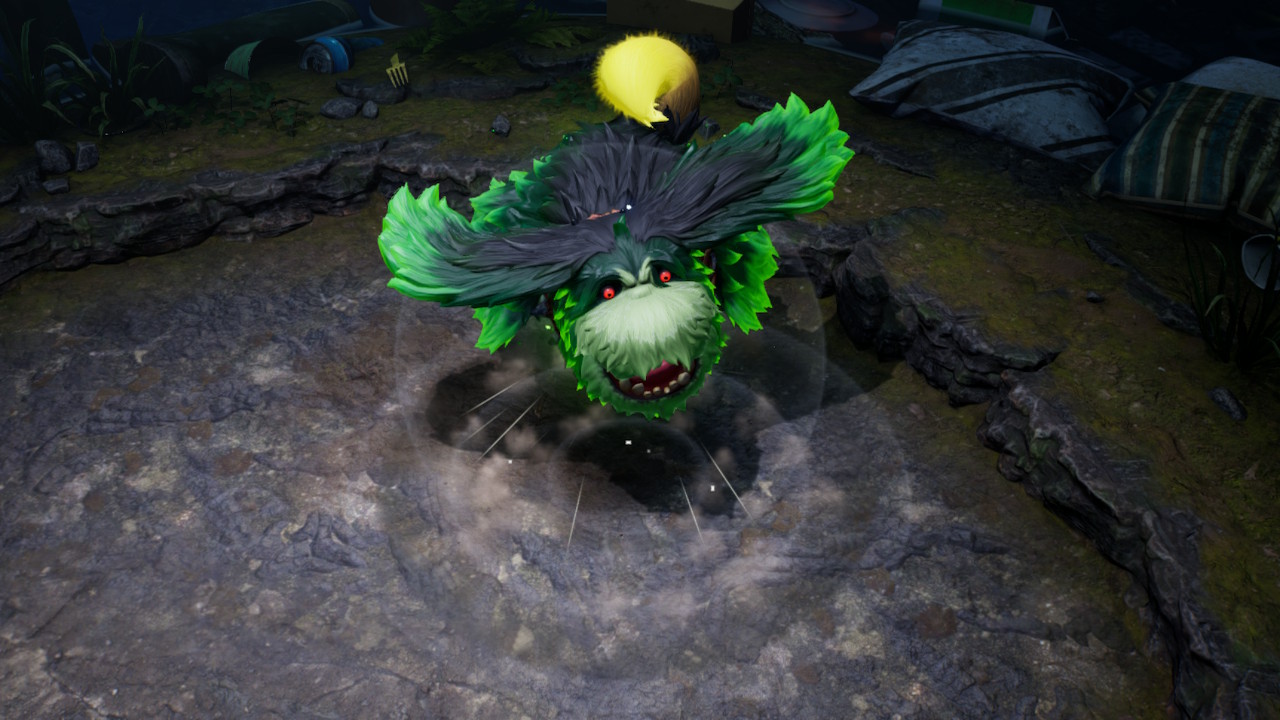 | Summary | The Ancient Sirehound roaring in its gloom phase in Cavern for a King in Pikmin 4. |