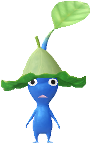 | Summary | A Blue Rainy Day Decor Pikmin with Leaf Hat decor from Pikmin Bloom. |