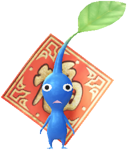 | Summary | A Blue Special Decor Pikmin with Lunar New Year Ornament: Red decor from Pikmin Bloom. |