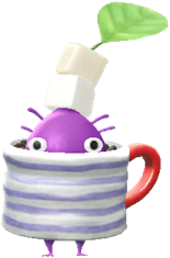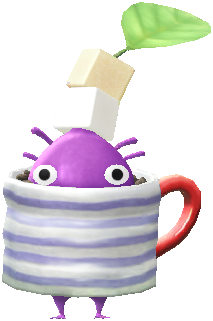 | Summary | A Purple Café Decor Pikmin with Coffee Cup decor from Pikmin Bloom. |