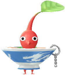 | Summary | A Red Ramen Restaurant Decor Pikmin with Ramen Keychain decor from Pikmin Bloom. |