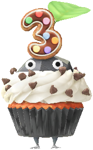 | Summary | A Rock Special Decor Pikmin with 3rd Anniversary Cupcake decor from Pikmin Bloom. |