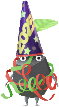 | Summary | A Rock Special Decor Pikmin with Party Popper 2025 decor from Pikmin Bloom. |