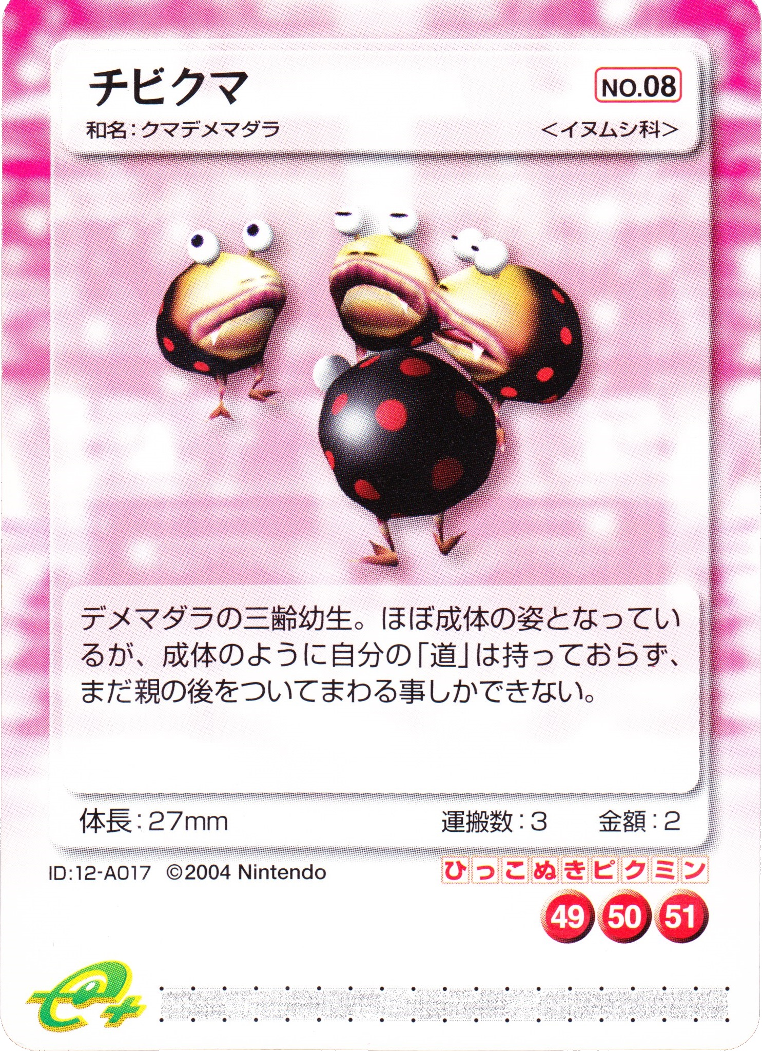 This is a Pikmin e-card. The information contained in this page is subject to copyright. All rights are reserved by Nintendo. We use it only in the belief that the information is designed to be an accompaniment to playing the game, and its use here will not: