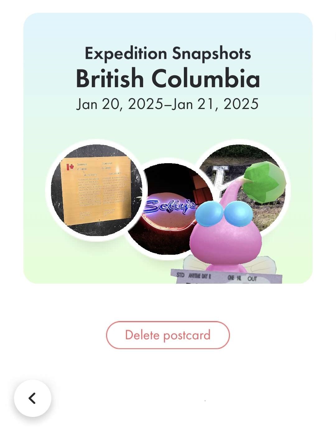 | Summary | Expedition Snapshot section of a postcard. |