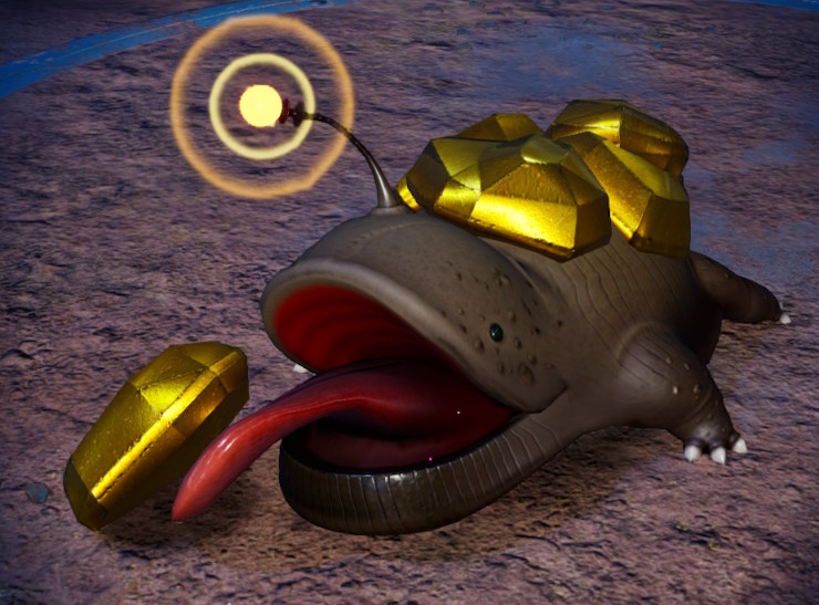 | Summary | A Gildemander as seen in Doppelgänger's Den licking up one of its gold nuggets. |