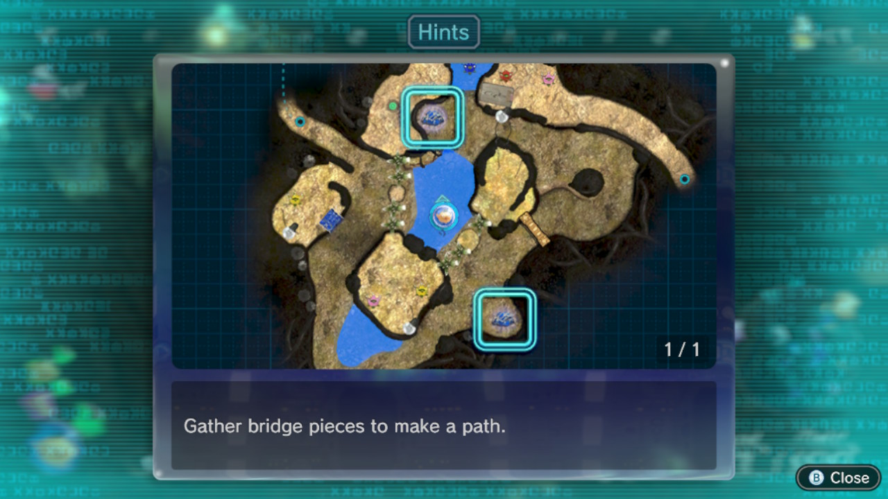 | Summary | Page 1 of the fourth unique hint in the Formidable Oak in Pikmin 3 Deluxe. This screenshot of the hint page should be replaced with the hint image itself when possible. |