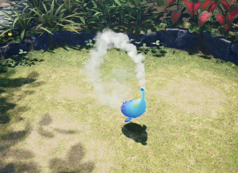 | Summary | A screenshot of a deflating Icy Blowhog as it dies in Pikmin 4. |