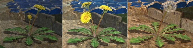 A montage showing how a Dandelion can evolve day after day in Pikmin 3.