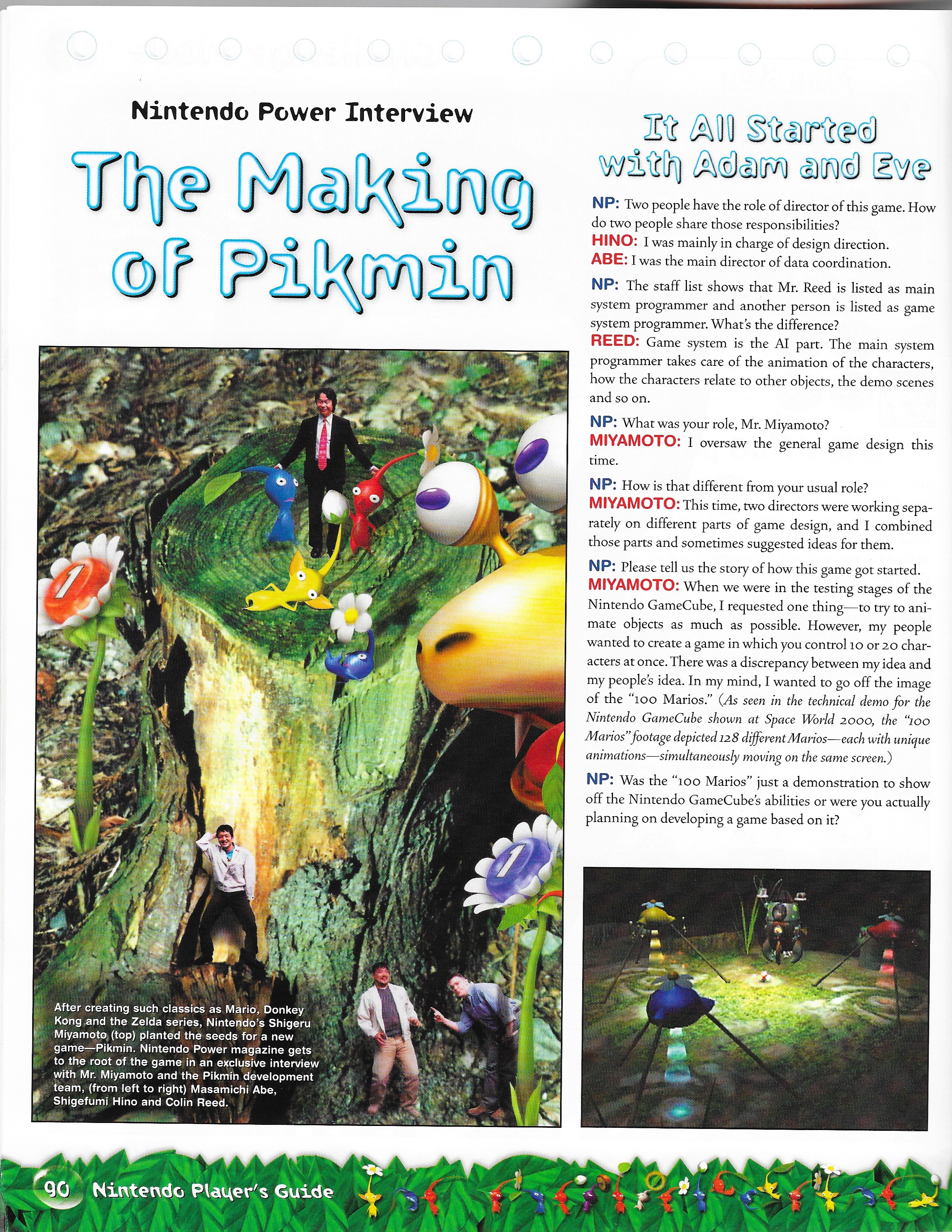 Page 90 of the Nintendo Power issue that features an interview with the Pikmin developers.