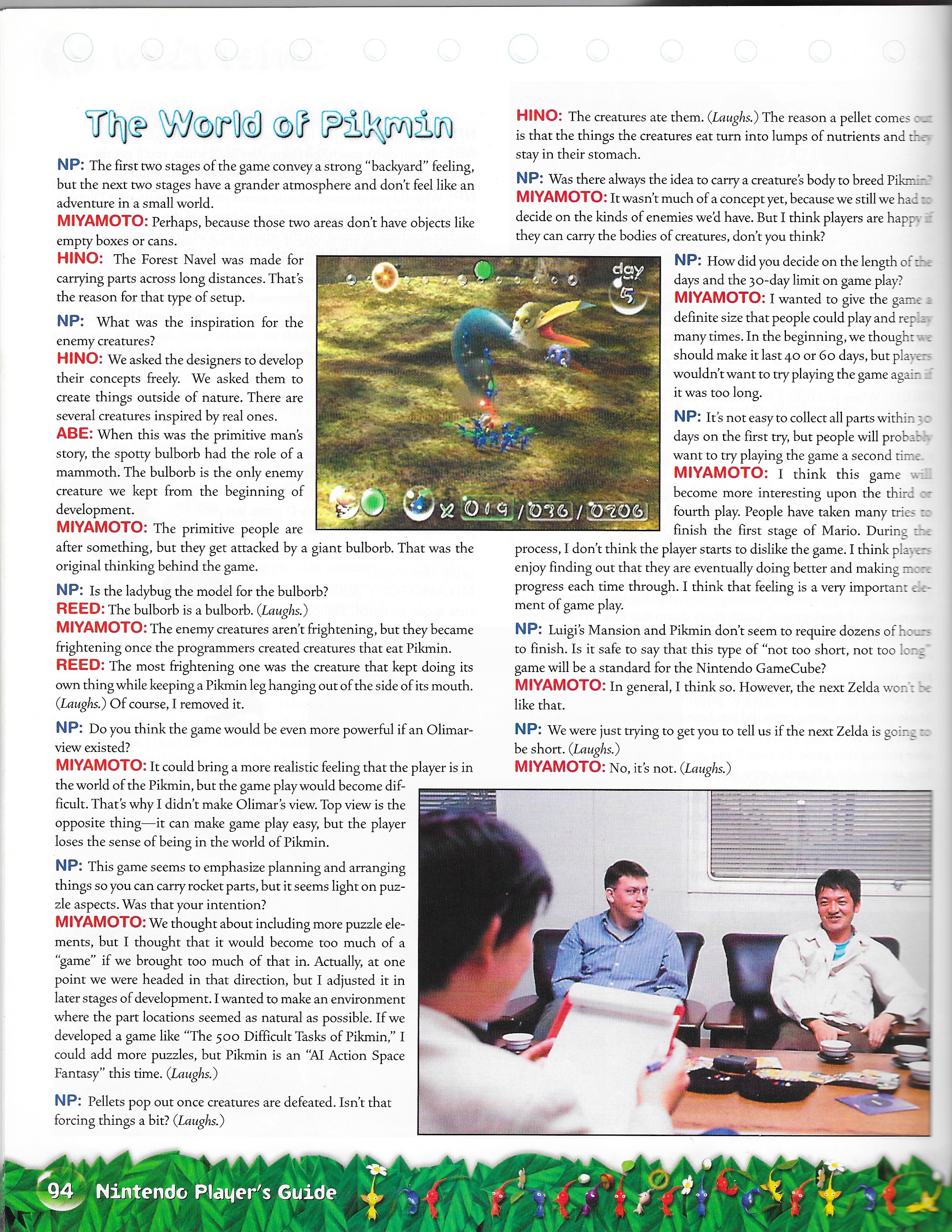 Page 94 of the Nintendo Power issue that features an interview with the Pikmin developers. This particular page talks about a cut enemy.