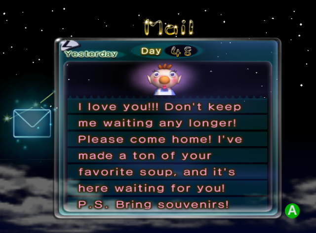 | Summary | A letter from Olimar's wife, and the last one in the game. |