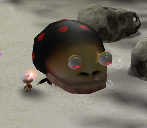 | Summary | A screenshot of an idle Spotty Bulbear in Pikmin 1 (Nintendo Switch). |