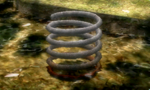 | Summary | Screenshot of the Coiled Launcher in Pikmin 2's Treasure Hoard. |