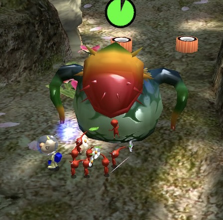 | Summary | A screenshot of a Creeping Chrysanthemum eating Pikmin in Pikmin 2 (Nintendo Switch). |