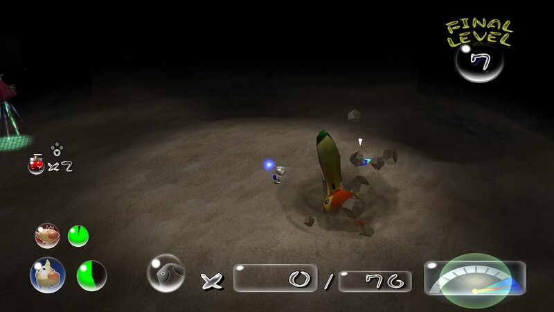 | Summary | A screenshot of an emerging Pileated Snagret in Pikmin 2 (Nintendo Switch). |