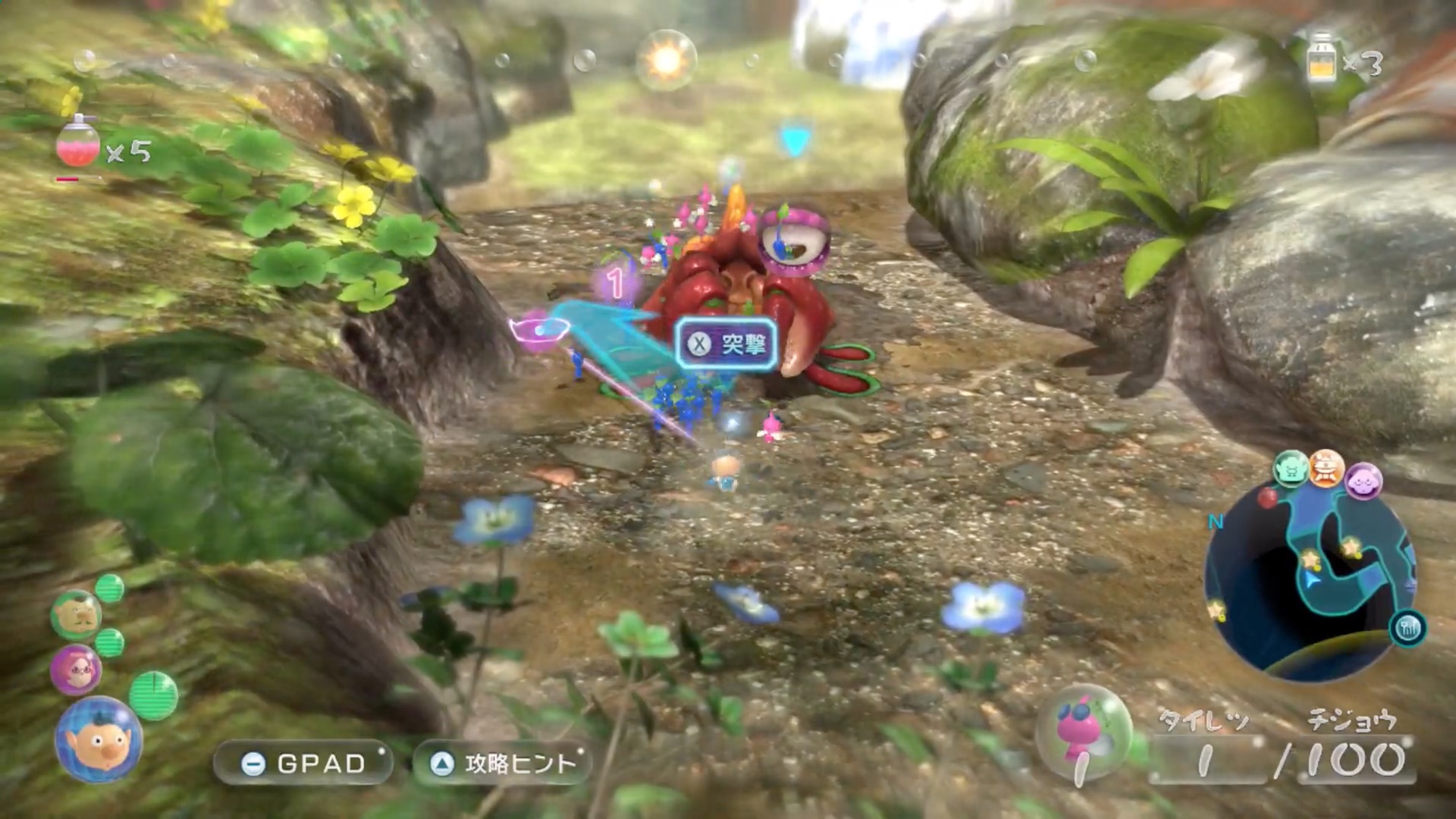 | Summary | A screenshot from a promotional video on Pikmin 3 Deluxe, showing the player charging at a Bug-Eyed Crawmad. From https://youtu.be/USUnZMZKYY0?t=10 |
