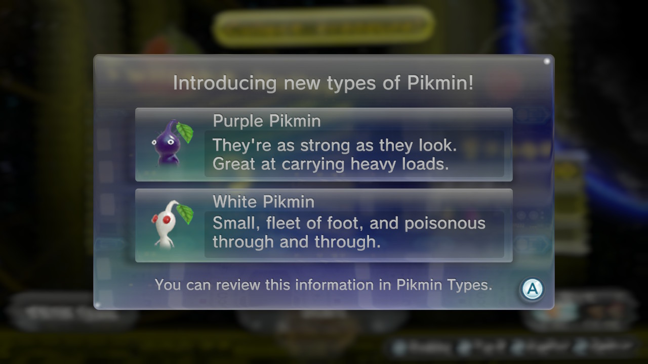 | Summary | The dialog that shows up introducing types of Pikmin not yet seen in story mode. |