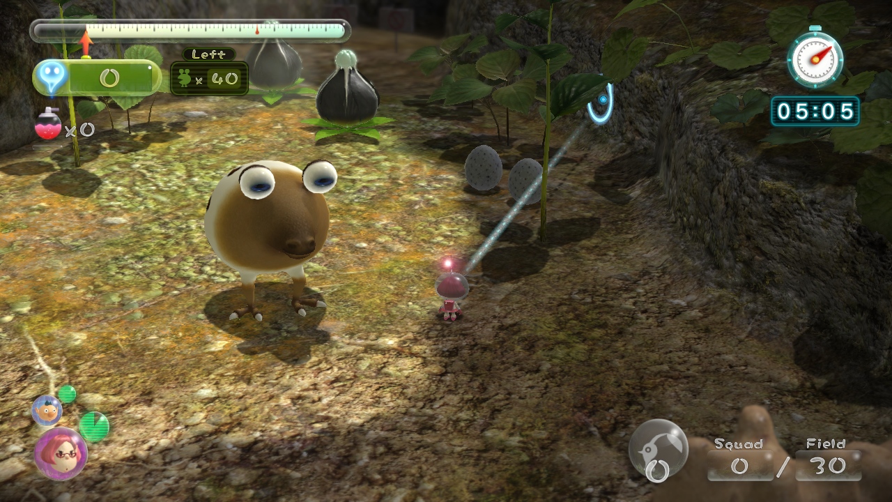 A Whiptongue Bulborb guarding two Candypop Buds.