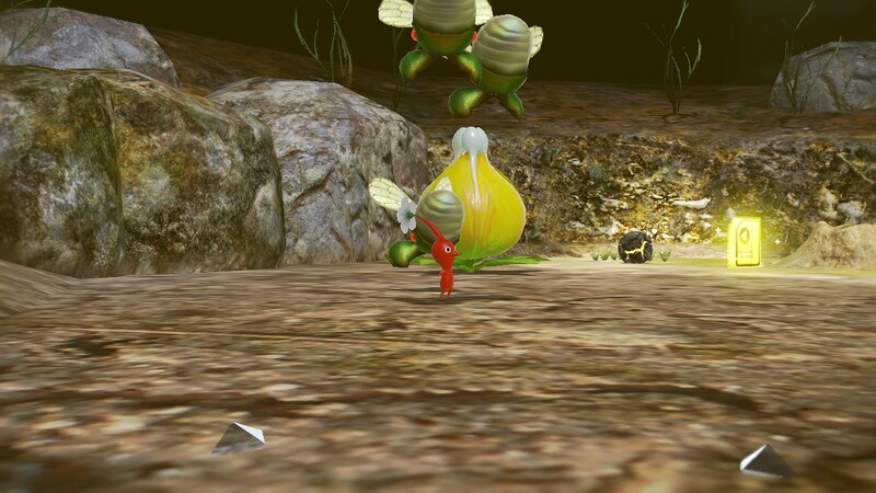 | Summary | A screenshot showing a group of Shearwigs swoop down to attack a Pikmin in Pikmin 3 Deluxe. |