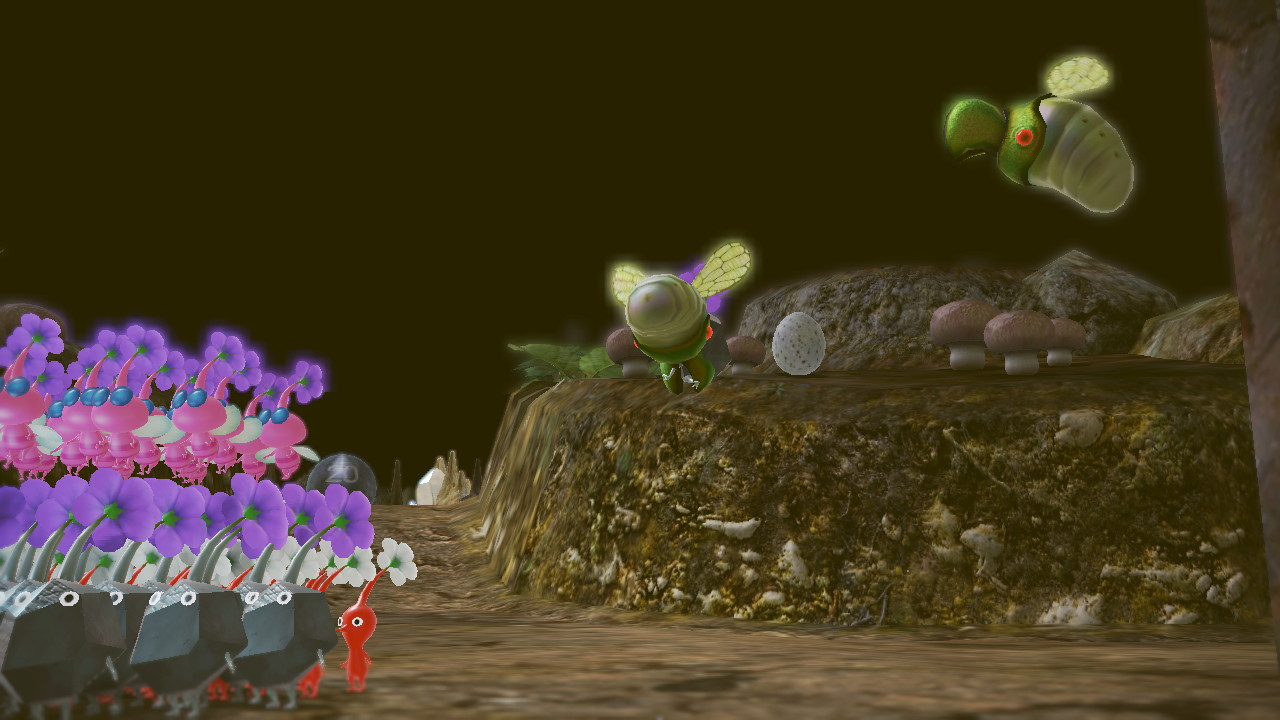 | Summary | A screenshot showing a Shearwig eat a Pikmin whilst flying in Pikmin 3 Deluxe. |