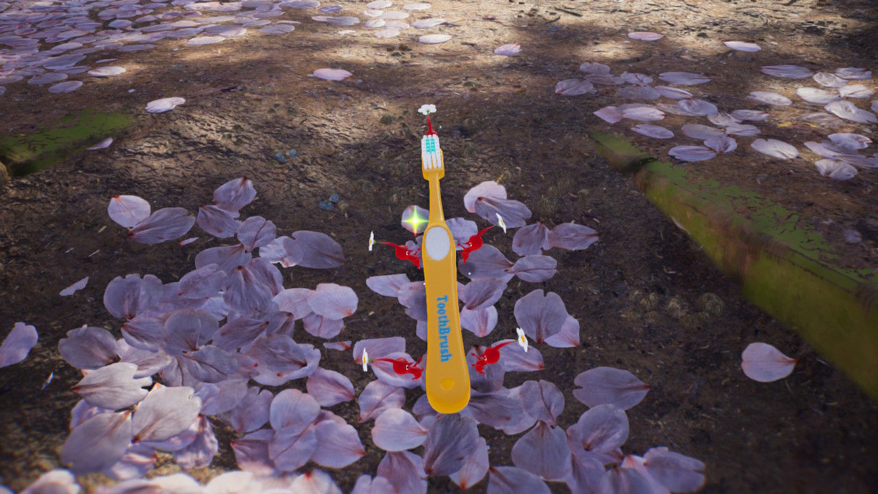 | Summary | The Brush of Wisdom in the Blossoming Arcadia, being carried by 5 Red Pikmin. |