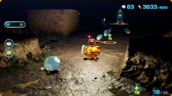 | Summary | A screenshot of Pikmin 4 showing Pikmin collecting raw materials in a cave. |