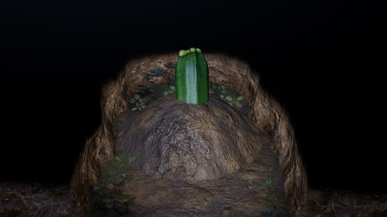 | Summary | The Crew-Cut Gourd in the Kingdom of Beasts, in the location it is discovered. Closeup image. (Buried). |