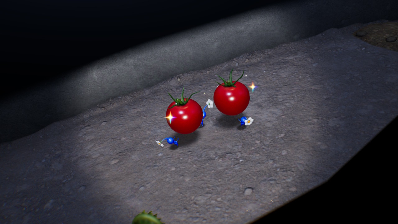 | Summary | The two Crush Nuggets in the Engulfed Castle, each being carried by a pair of Blue Pikmin. |