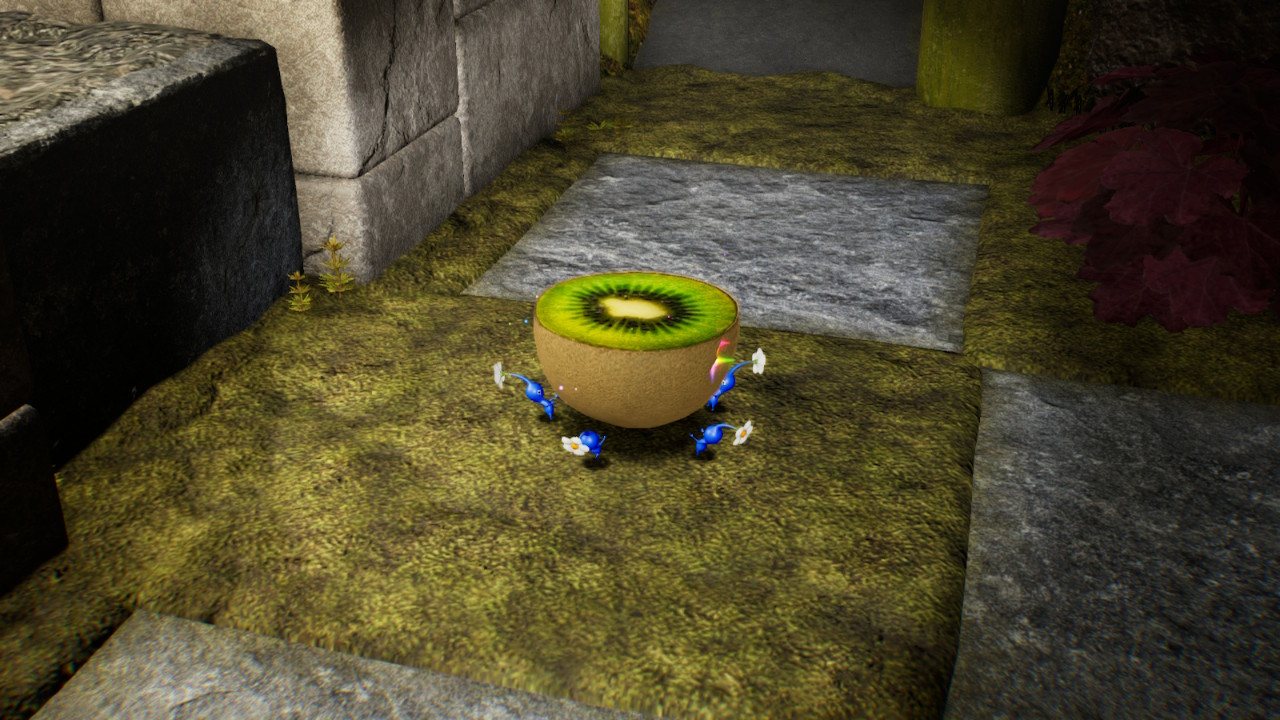 | Summary | The Disguised Delicacy in the Secluded Courtyard, being carried by some Blue Pikmin. |
