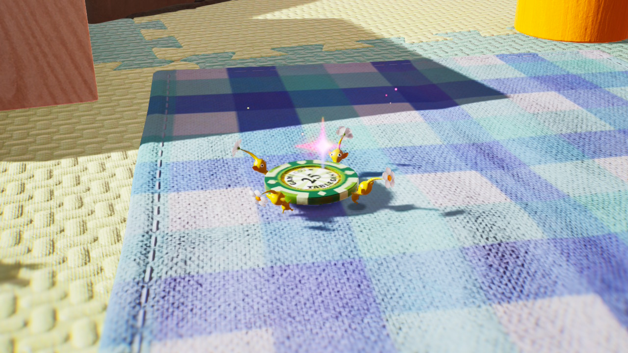 | Summary | The Disk of Sorrowful Wisdom in the Plunder Palace, being carried by 4 Yellow Pikmin. |