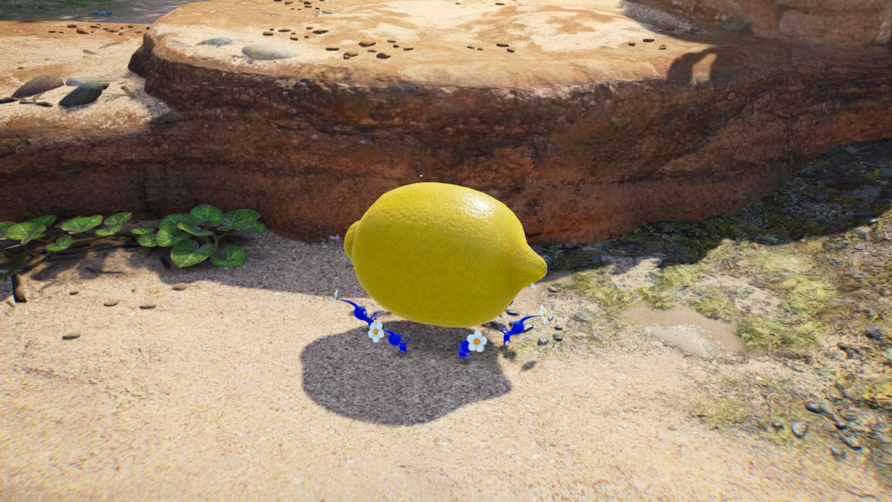 | Summary | The Face Wrinkler in the Serene Shores, being carried by multiple Blue Pikmin. |