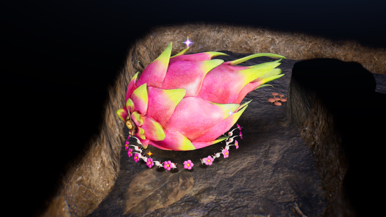 | Summary | The Fire-Breathing Feast in the Cavern for a King, being carried by multiple White Pikmin. |