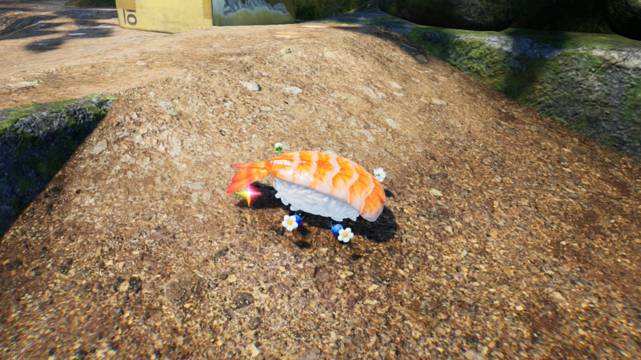 | Summary | The Fish-Bed Snack in the Giant's Hearth, being carried by a few Blue Pikmin. |