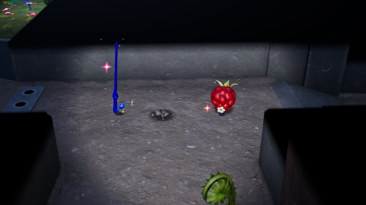 | Summary | The Ice Sword and the Juicy Gaggle in the Engulfed Castle, each being carried by 1 Blue Pikmin. |
