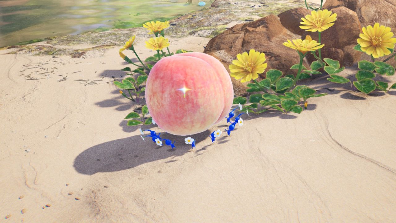 | Summary | The Mock Bottom in the Serene Shores, being carried by 12 Blue Pikmin. |