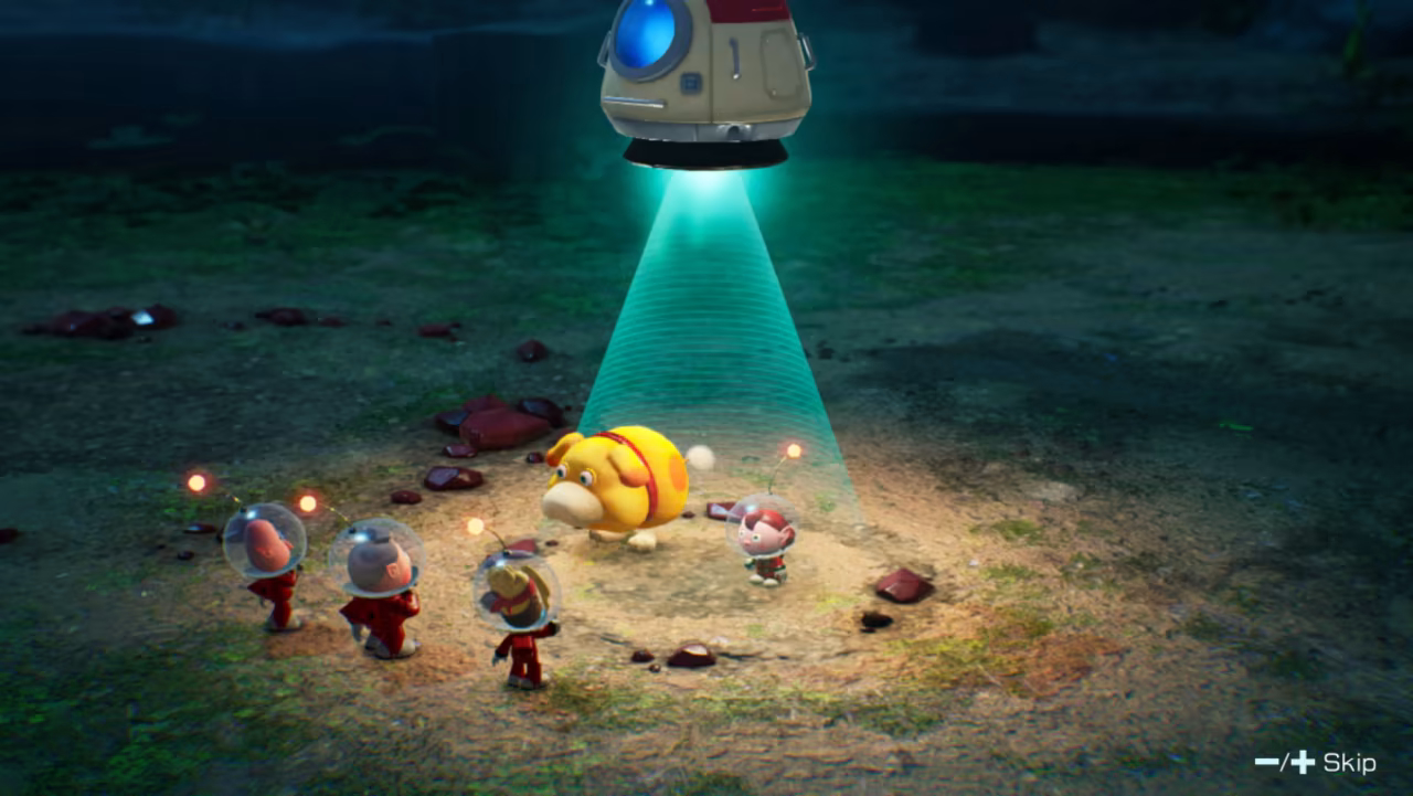 | Summary | A screenshot from Pikmin 4 showing a cutscene at nighttime. |