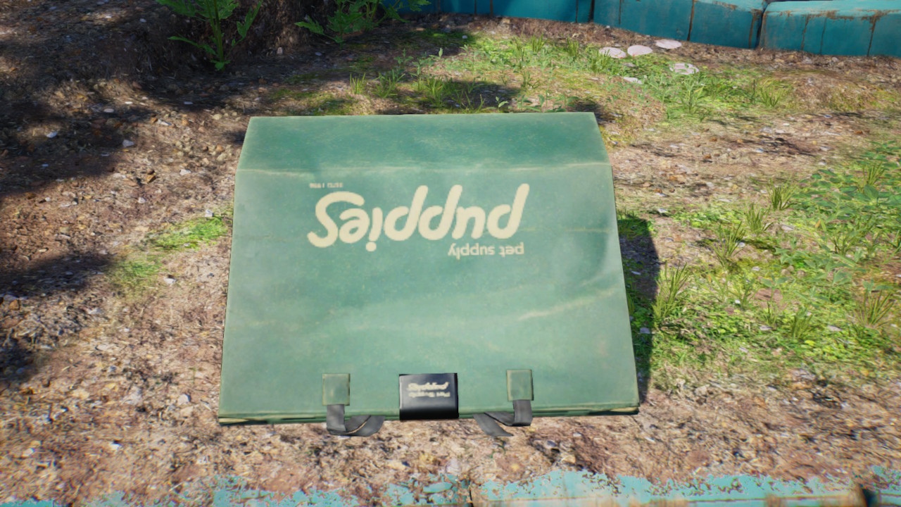 | Summary | A green paper bag in the Blossoming Arcadia; the one near the Drafty Gallery. Closeup image. |