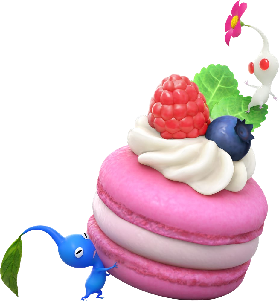 | Summary | A Blue Pikmin carrying a macaroon, with a White Pikmin on top of it. |