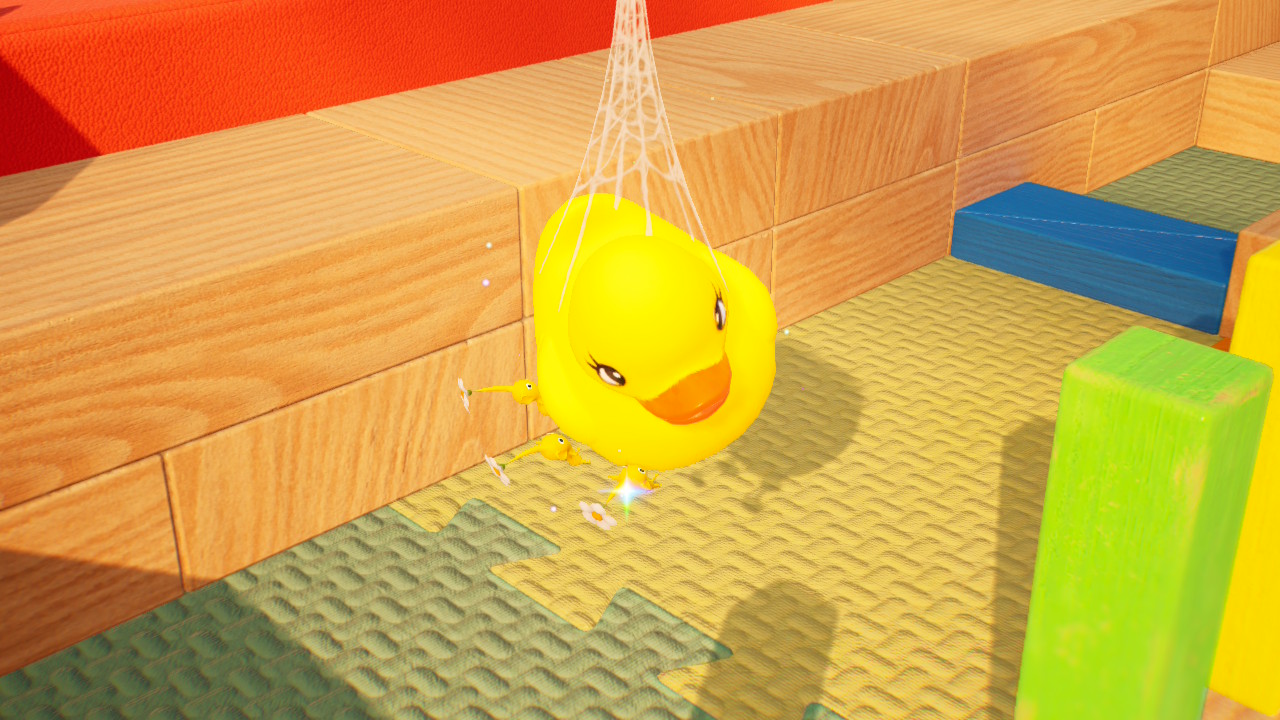 | Summary | The Planetary Rubber Cutie in the Plunder Palace, being latched onto by a few Yellow Pikmin. |