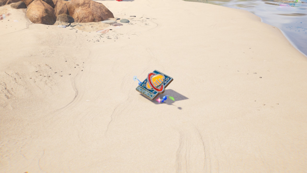 | Summary | The Ring-of-Return Shield in the Serene Shores, being carried by a pair of Blue Pikmin. |