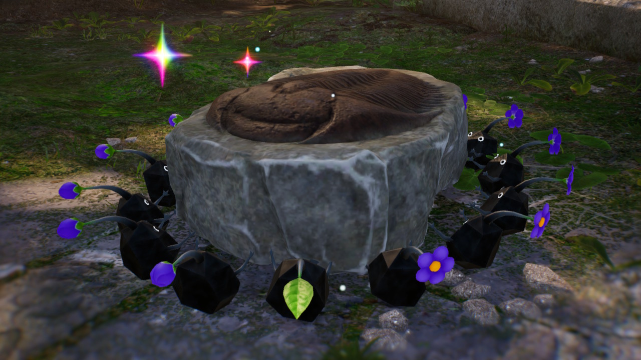| Summary | The Slipper-Bug Fossil in the Giant's Hearth, being carried by some Rock Pikmin. |