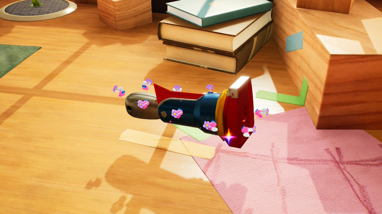 | Summary | The Sure-Footed Combobot in the Hero's Hideaway, being carried by multiple Winged Pikmin. |