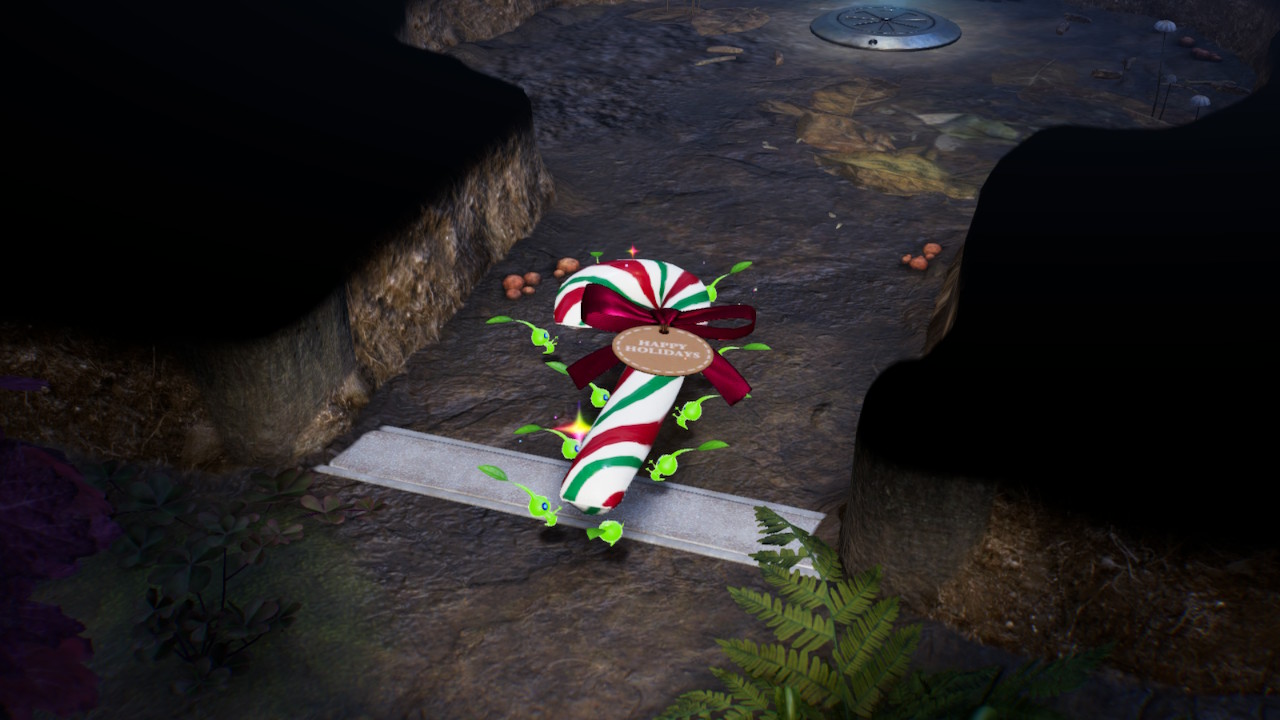 | Summary | The Sweet Stumble-Not in the Subterranean Swarm, being carried by some Glow Pikmin |