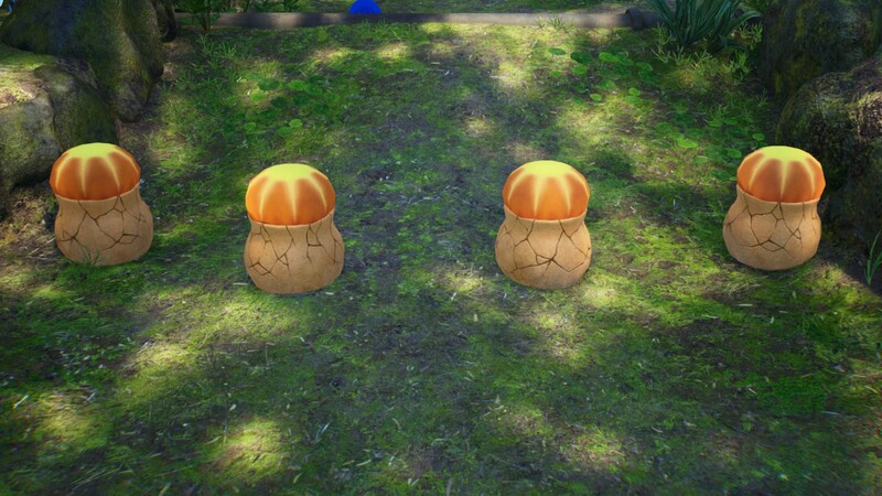 | Summary | A close-up of some potted mushrooms still in their pots in Pikmin 4. |