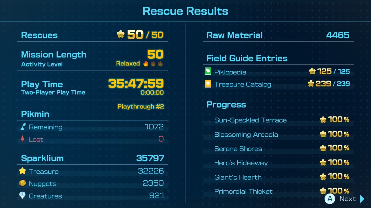 | Summary | The Rescue Results screen from Pikmin 4. |