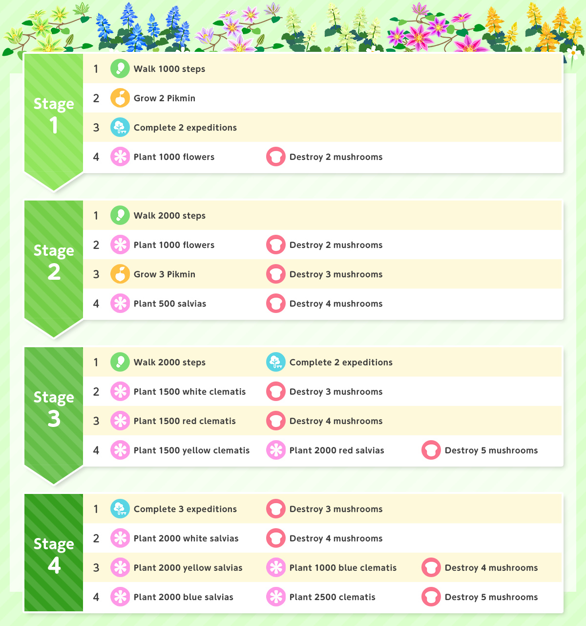 | Summary | List of Event Challenge missions for the 4th Anniversary Event in Pikmin Bloom. |